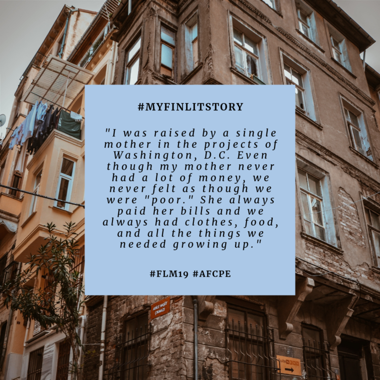 My financial journey started from childhood, as I was raised by a single mother in the projects of Washington, D.C. Even though my mother never had a lot of money, we never felt as though we were “poor.” She always paid her bills and we always had clothes, food and all the things we needed growing up.
