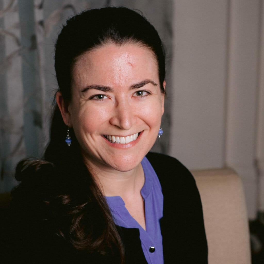 Award winner Jenni Whitely smiling in front of a white background in a white sweater